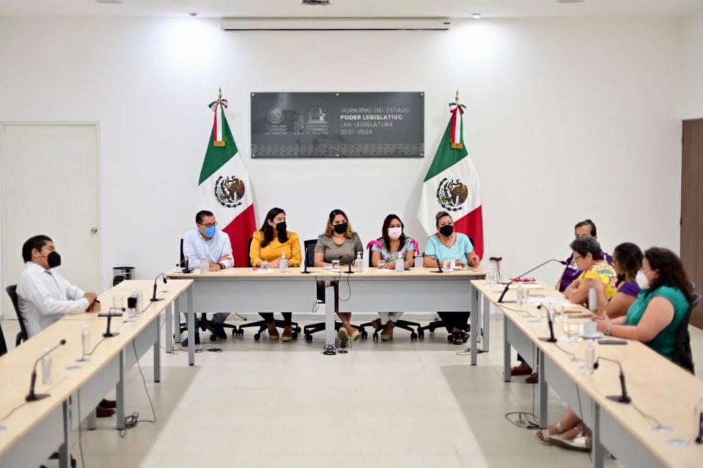 Mérida, 23/08/2022.  -Diversas integrantes de la Agenda de Mujeres por la Igualdad Sustantiva en Yucatán (AMISY) se reunieron esta tarde con diputados, a fin de refrendar su confianza y apoyo al Congreso por las acciones emprendidas ante la inconstitucionalidad promovida por la Comisión Nacional de Derechos Humanos (CNDH) por la Ley 3 de 3.
