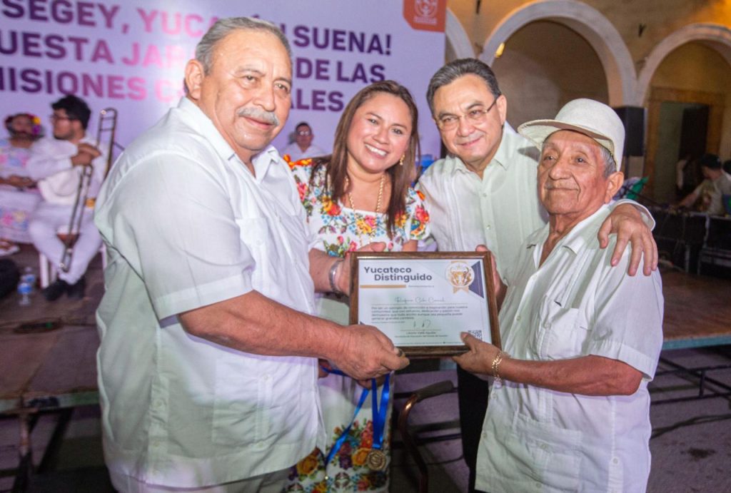En el marco del evento se otorgaron reconocimientos y medallas a yucatecos distinguidos, personajes emblemáticos, por ser un ejemplo de entrega, convicción e inspiración para la comunidad de Maxcanú, destacando productores de jícama, artesanas, artesanos, deportistas, comerciantes, docentes entre otros.