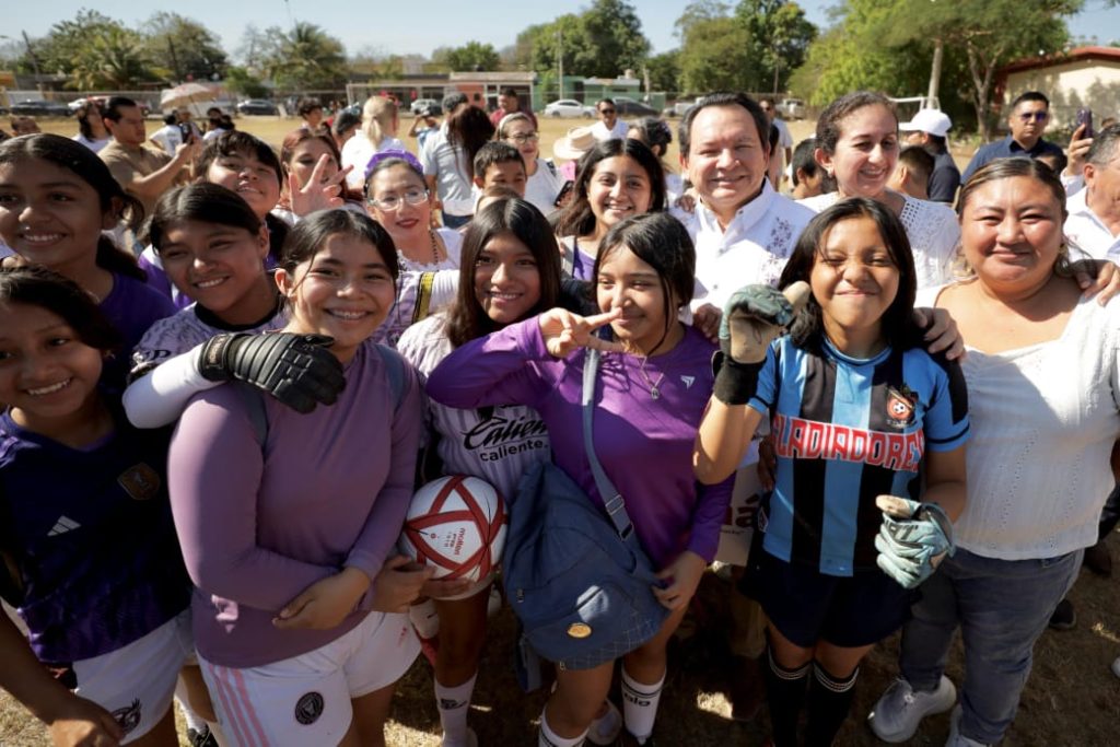 MÉRIDA, YUCATÁN,01/03/2025. -Por la estrategia Aliados por la Vida, el Gobernador Joaquín Díaz Mena, inauguró el primer Torneo de Fut 7 Yóok’ol Kaab en la Escuela Secundaria Técnica No. 59 “República de Ecuador”, un encuentro deportivo donde las y los jóvenes estudiantes y sus familias encontraron un espacio para la sana convivencia y la actividad física, alejándolos de conductas de riesgo como las adicciones y la delincuencia.