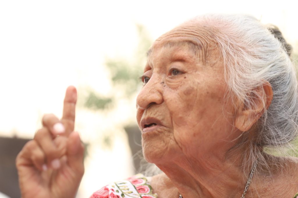 A sus 92 años, Aracely Angélica de Jesús Cab Cumí agradeció a la diputada Pat Dzul y al Congreso del Estado por haberla designado como recipiendaria del mérito, el cual reconoce a las mujeres que por décadas han alzado la voz para defender sus ideales.