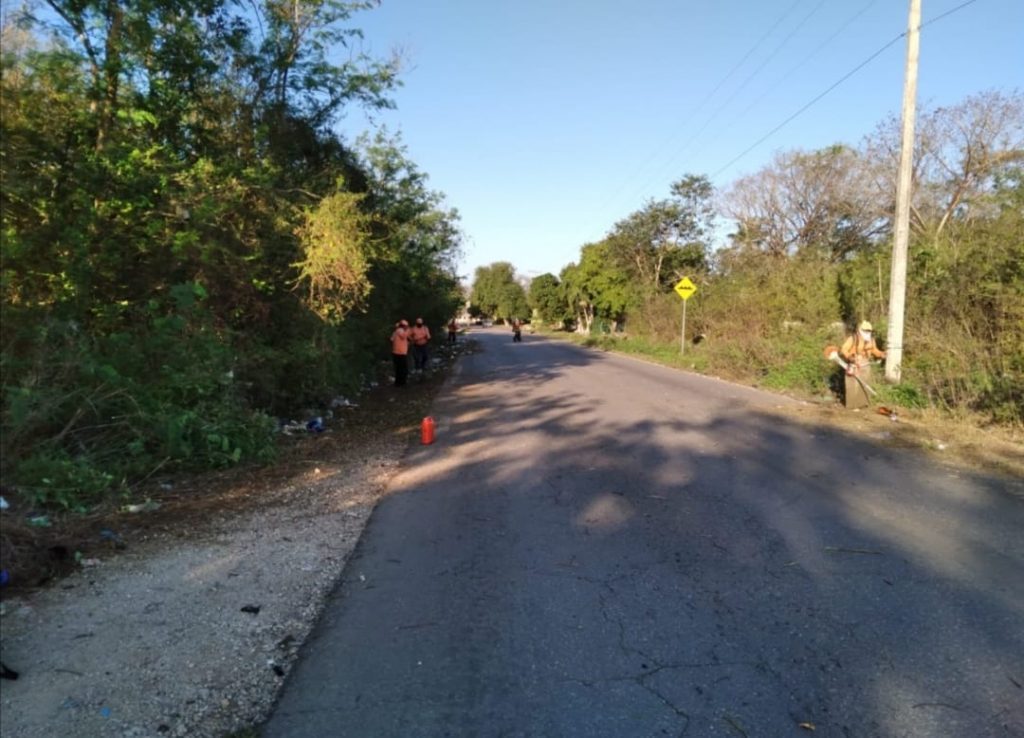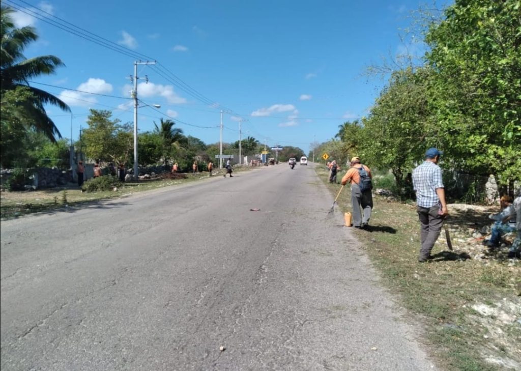 YUCATÁN, 26/02/2022. –Las comisarías del municipio de Umán, son bien atendidas por el personal de Aseo Urbano, en temas de recolección de basura, desbroce y limpieza de espacios públicos.