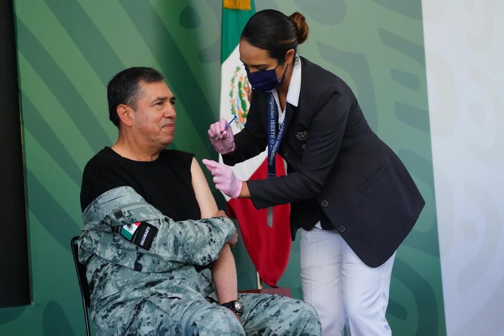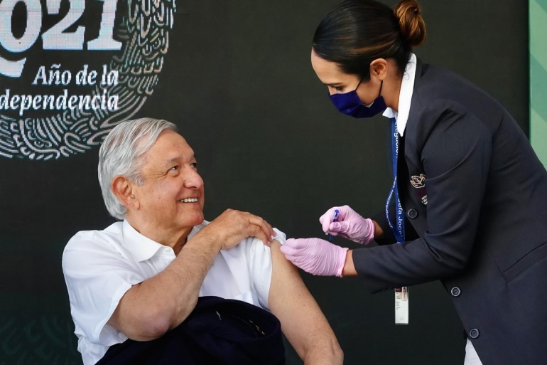 El mandatario fue vacunado tal como ocurrirá desde este día con las y los habitantes de Chiapas, Ciudad de México, Jalisco, Oaxaca, Sinaloa y Yucatán que tienen más de 60 años y esquema de vacunación completo hasta antes de junio de 2021.
