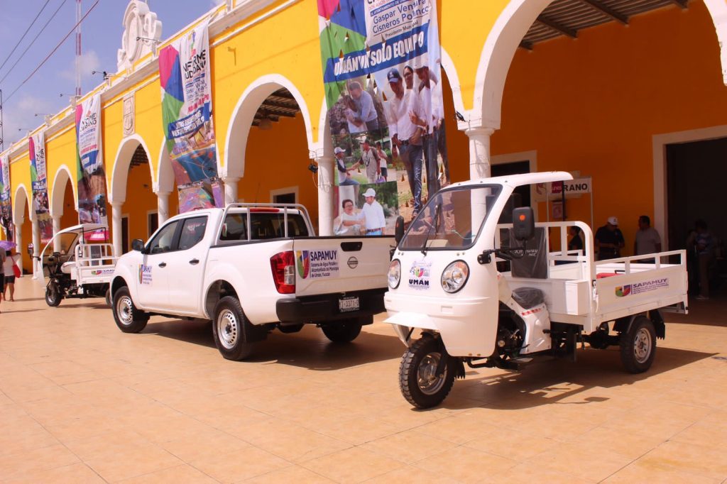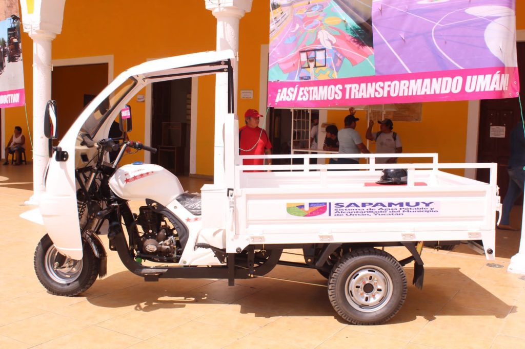 Con una inversión de 1,140,000 pesos se adquirió una camioneta Nissan NP300 2023, con redilas, una camioneta Nissan Frontier 2023, 2 Trimotos Kingway 2023 y 2 cajas con herramientas de uso exclusivo para fontanería y una caja de herramientas para trabajos de mantenimiento. Esto con la finalidad única de mejorar aún más el servicio de agua potable en Umán.