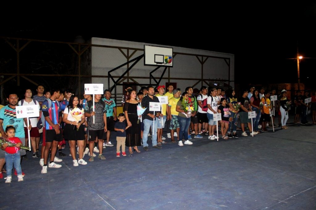 YUCATÁN, 01/04/2023. —Promueven el deporte en el municipio de Umán con la inauguración de la Liga del Presidente FUTSAL, en la comisaría de Ticimul en la que participan 18 equipos de fútbol que se estarán enfrentando por el campeonato.