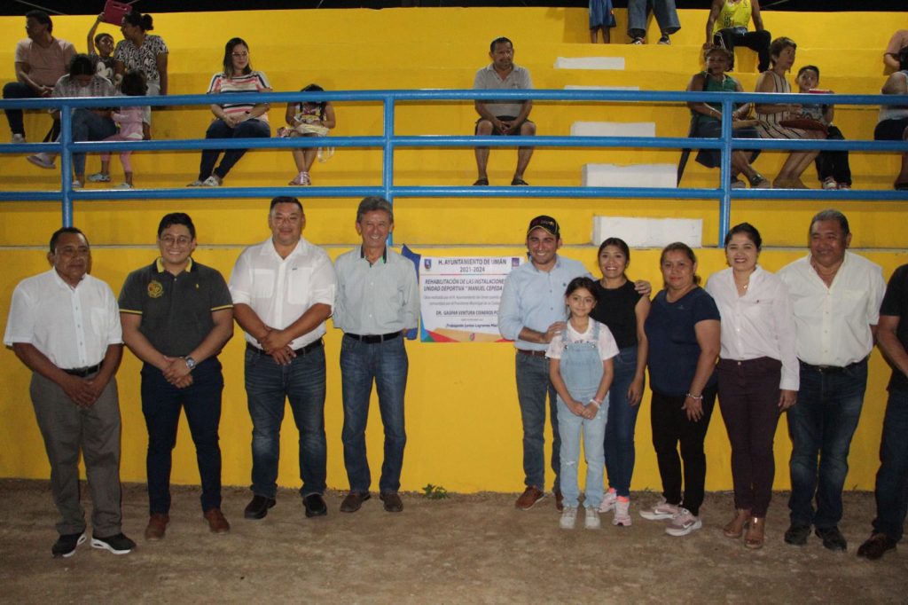 UMÁN, 29/04/2023. —Cómo parte de las acciones de reactivación de los espacios deportivos, el Presidente Municipal de Umán, Gaspar Ventura Cisneros Polanco, entregó los trabajos de rehabilitación de la Unidad Deportiva “Manuel Cepeda Peraza”.