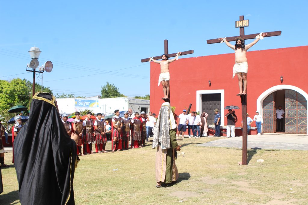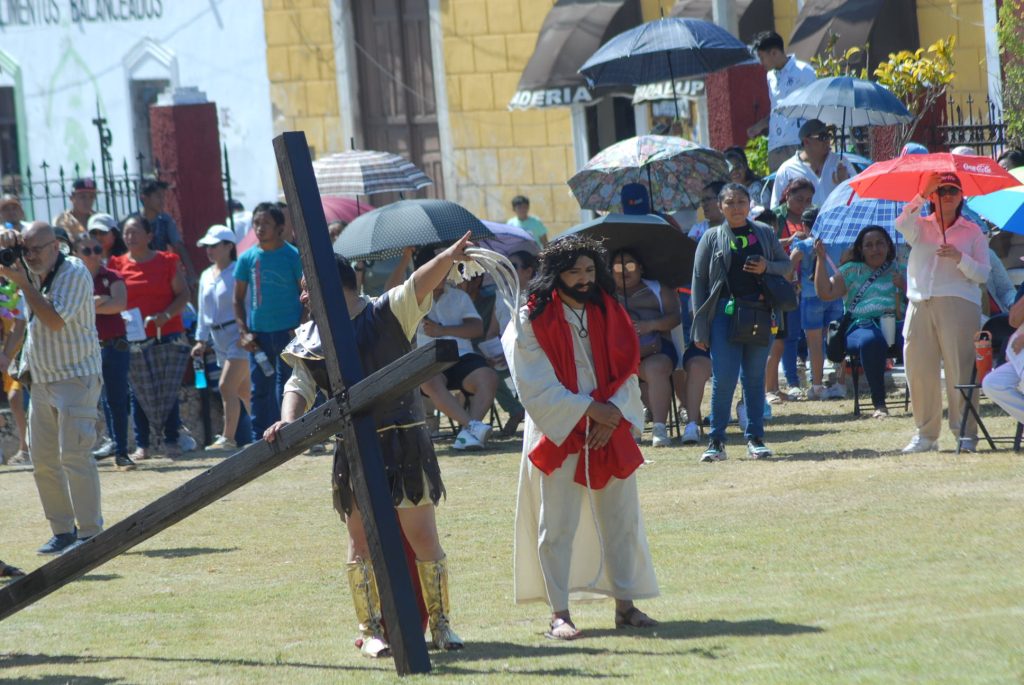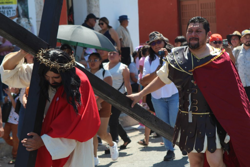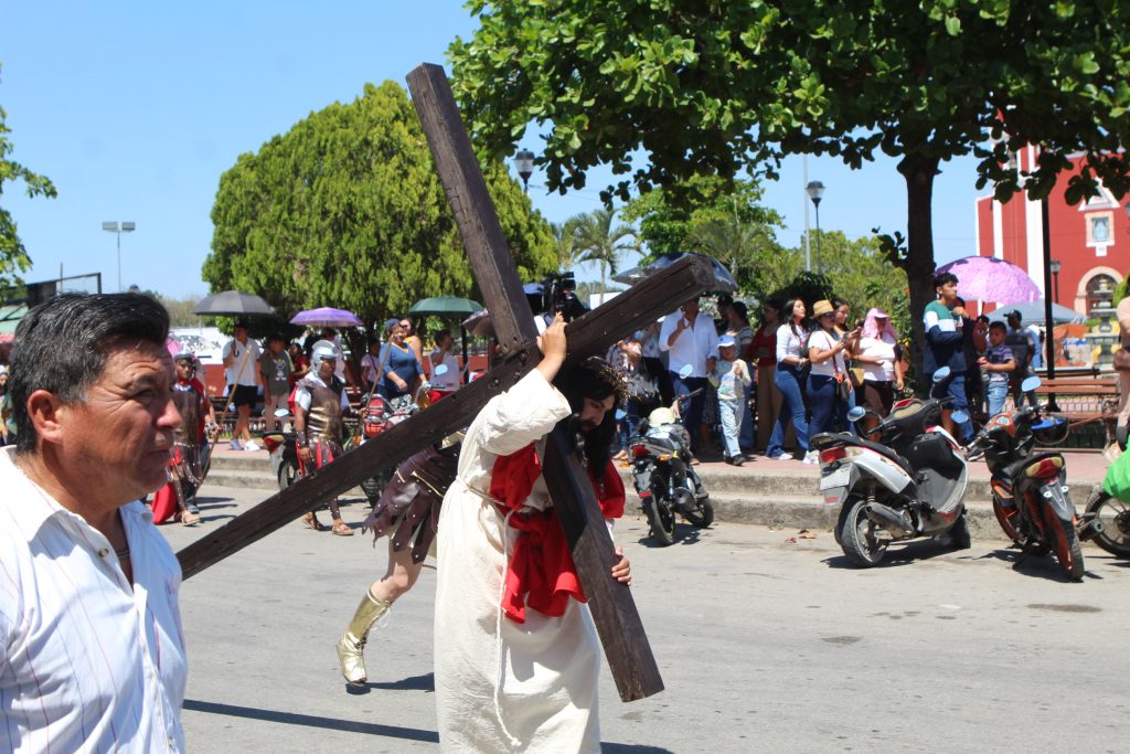 El enjuiciamiento, castigado y crucificado de Jesús, que fue interpretado por Omar Pech, jardinero de oficio, en cada paso, que daba expresaba su mensaje de unir a las familias del pueblo y que no se vean involucradas en actos negativos.