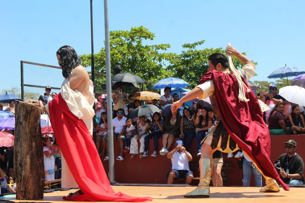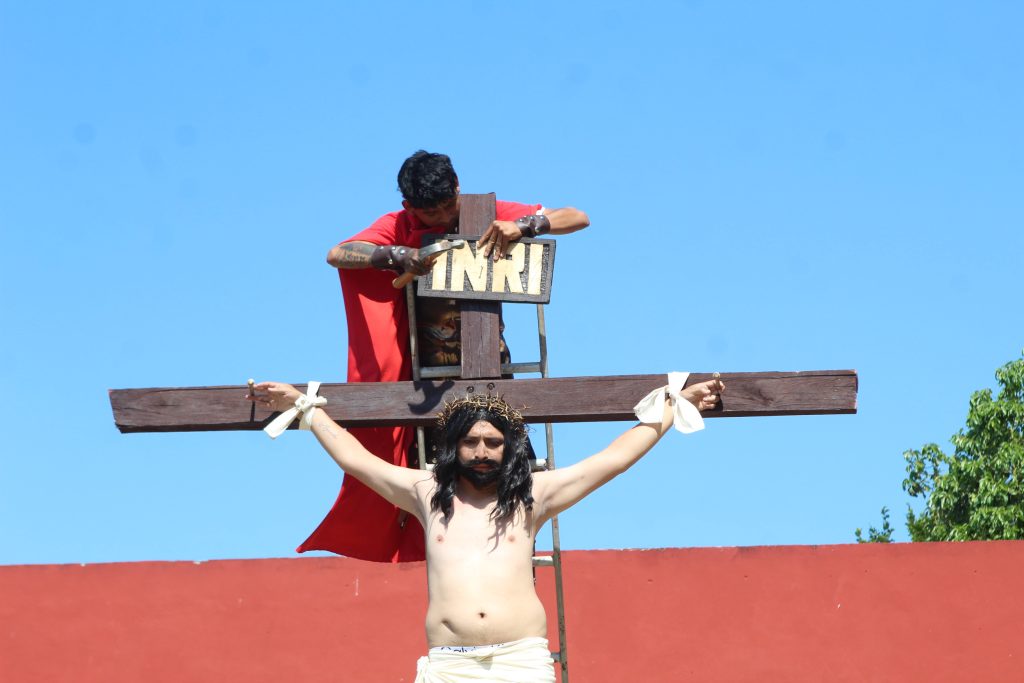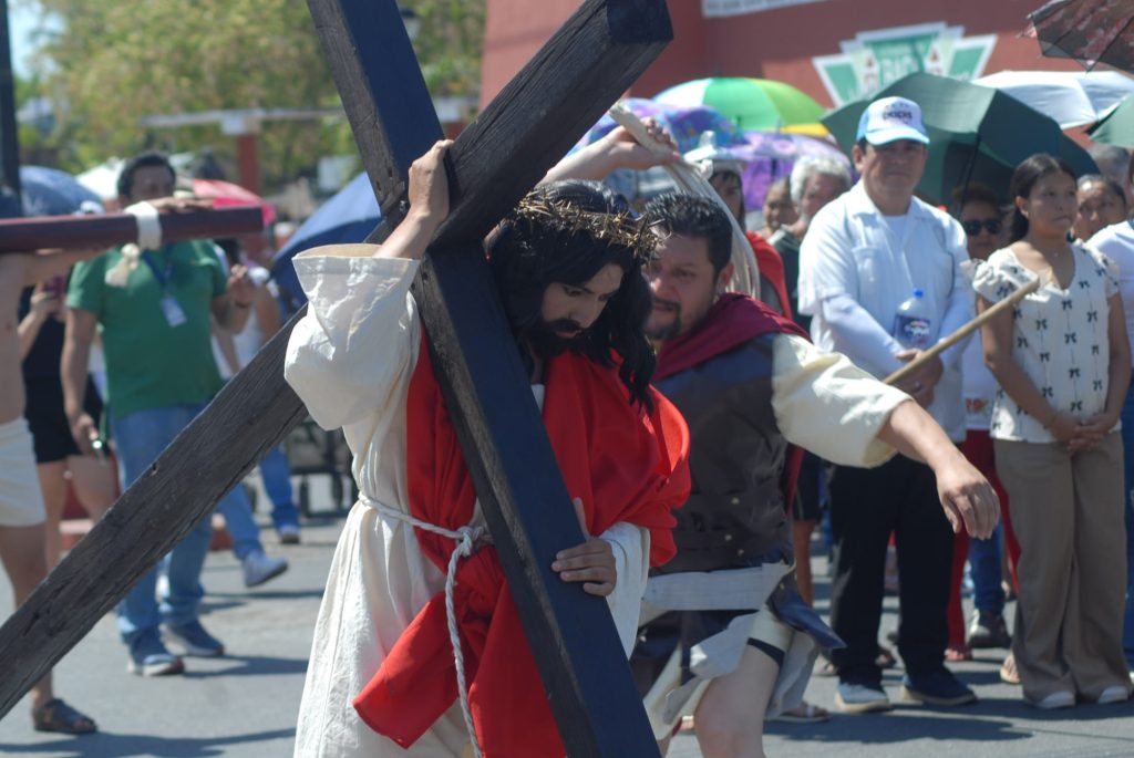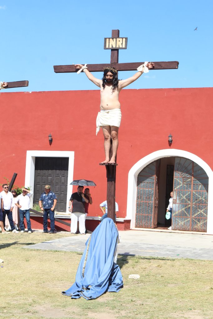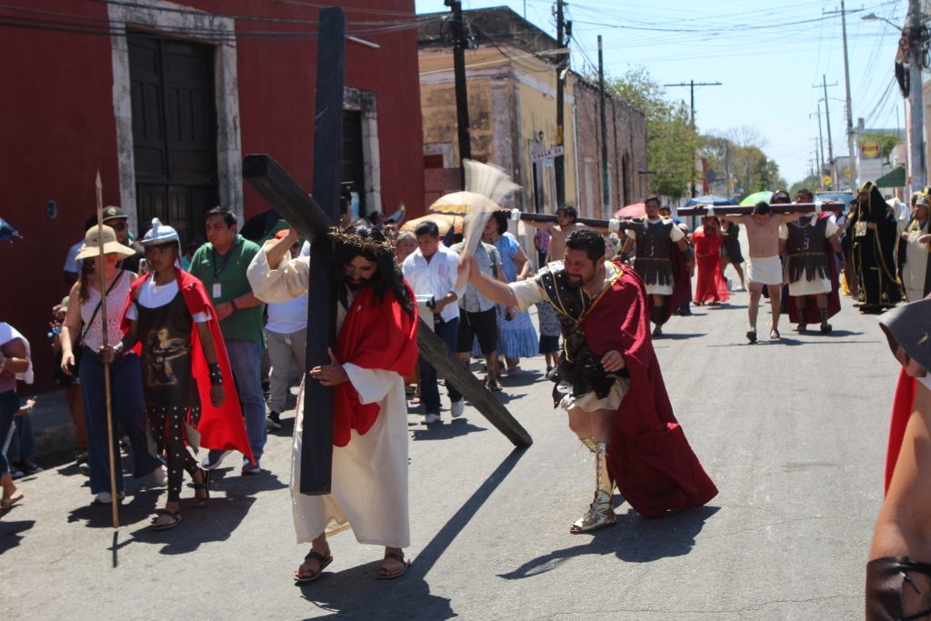 El enjuiciamiento, castigado y crucificado de Jesús, que fue interpretado por Omar Pech, jardinero de oficio, en cada paso, que daba expresaba su mensaje de unir a las familias del pueblo y que no se vean involucradas en actos negativos.