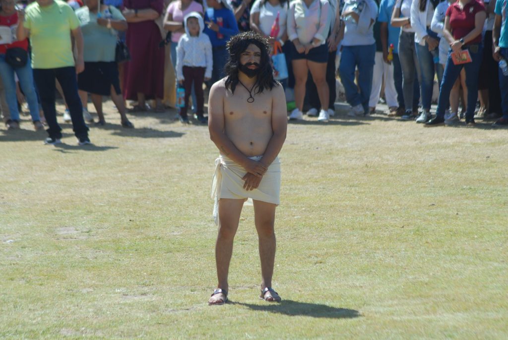 Unas mil personas, entre habitantes del pequeño poblado, así, como turistas nacionales e internacionales, acudieron a para presenciar con fe y devoción la representación número 45 del viacrucis viviente que se realizó en el Centro del poblado.