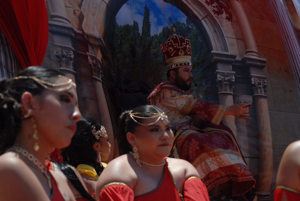Por su parte, Herodes el Grande, con sus odaliscas, se cansó de pedirle a Jesús un milagro, le pidió que convierta la piedra en pan y el agua en vino, gritándole y burlándose de Jesús, Herodes lo mandó a Pilato diciendo que es un farsante y que le ponga el manto púrpura de los emperadores.