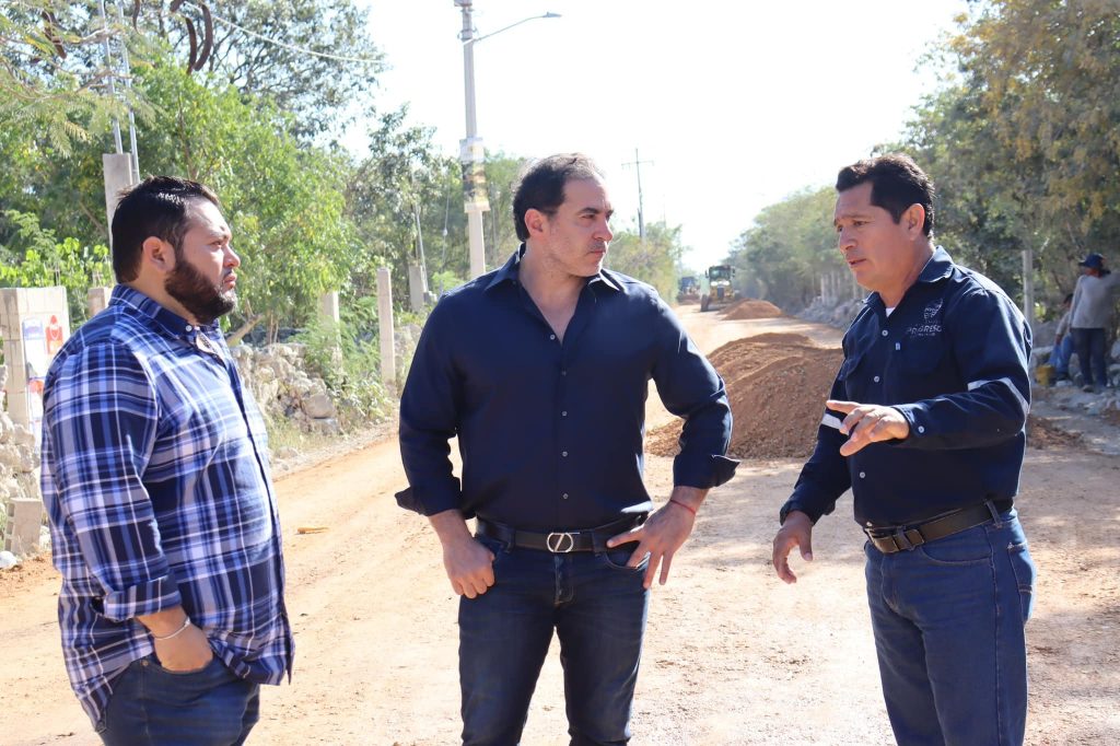 PROGRESO, YUCATÁN, 15/02/2023. El alcalde Julián Zacarías Curi, supervisó los trabajos de pavimentación que se llevan a cabo, en calles de la comisaría de Paraíso, esto en coordinación con el Instituto de Infraestructura Carretera de Yucatán (INCAY).