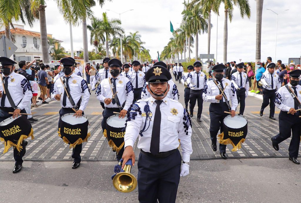 En el desfile, que duró una hora 30 minutos, participaron cinco banderas nacionales; por el Ejército Mexicano, 135 soldados, cinco vehículos y dos canes; por la Secretaría de Marina, 100 elementos de tropa, dos vehículos y tres canes; por la Guardia Nacional, 68 elementos y 10 vehículos; por la Secretaría de Seguridad Pública, 164 elementos, 23 vehículos, 10 motocicletas, dos embarcaciones y siete canes.