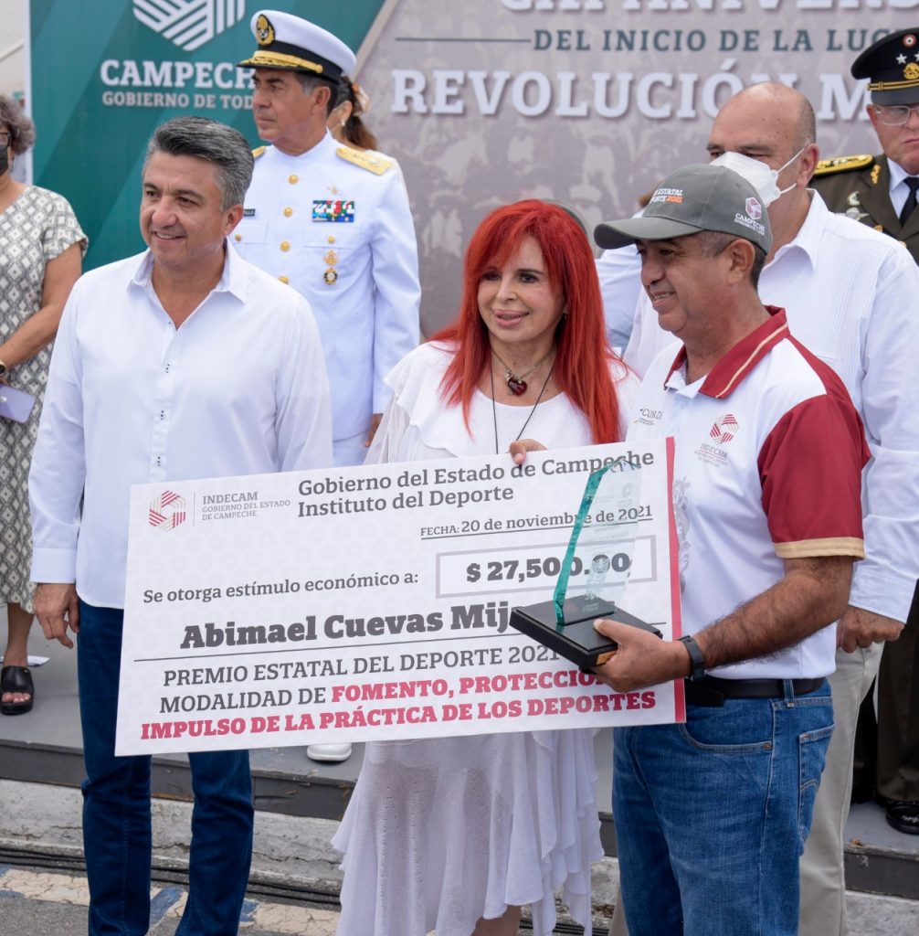 De igual forma entregó reconocimientos y estímulos económicos a Roberto David Sánchez Canto, ganador del Premio Entrenador del año 2021; a Abimael Cuevas Mijangos, ganador del Premio al Fomento, Protección o Impulso a la Práctica de los Deportes, y a Karol Josef Montero Mar, ganador del Premio al Mérito Deportivo, en la modalidad de deportes en conjunto en béisbol.