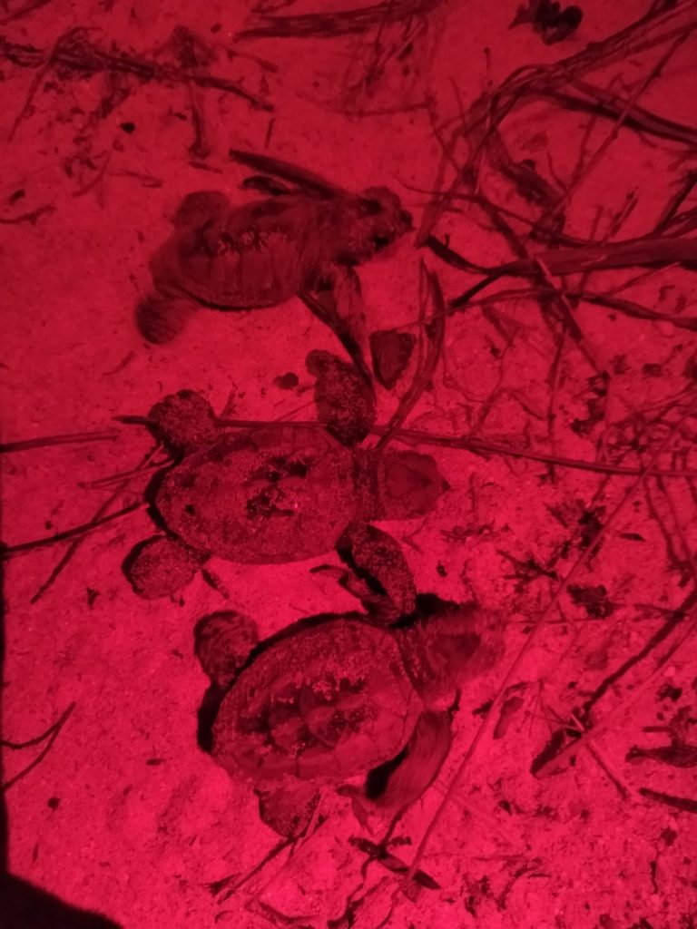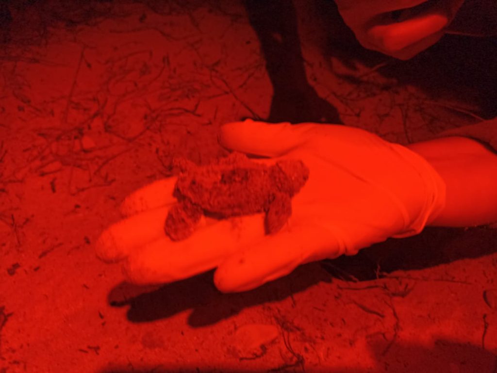 CAMPECHE, 19/05/2023. —Durante la madrugada de este viernes, el Campamento Tortuguero San Lorenzo informó del primer nido eclosionado en el Estado, en la temporada de anidación de tortugas marinas 2023, con un total de 95 crías de Tortuga Carey.