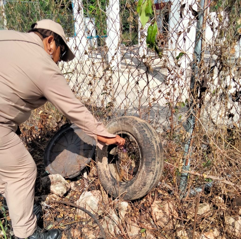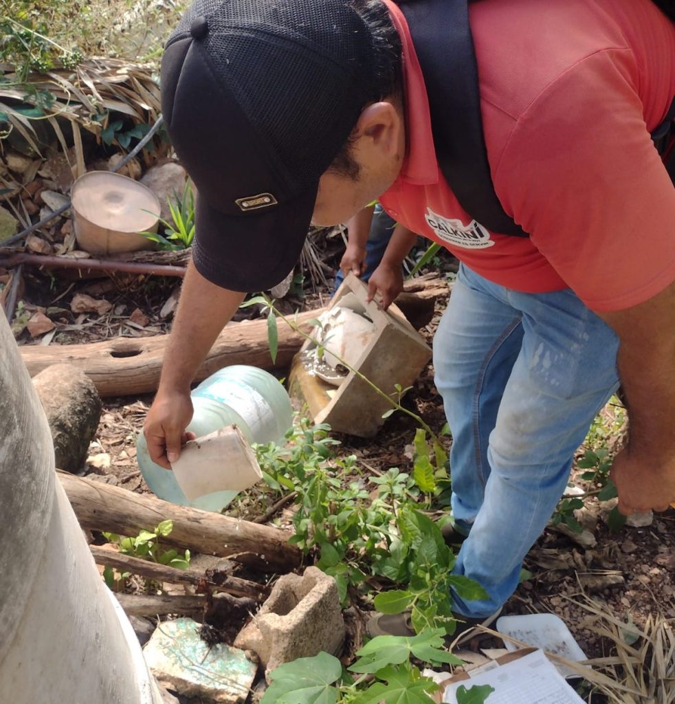 CAMPECHE, 04/12/2023. —La campaña contra el dengue es permanente en todo el estado, en acciones recientes, se realizó el control larvario, rociado residual, termonebulización y atención de ovitrampas, en siete colonias con mayor presencia de moscos y casos probables, en cabeceras municipales de Campeche, Tenabo, Champotón, Seybaplaya y Calkiní.