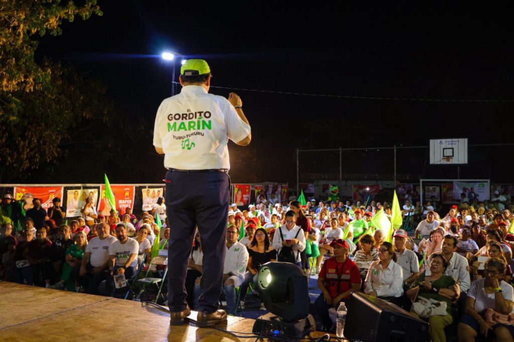Durante el cierre de campaña de la candidata a diputada local por el Distrito 02, María Fernanda (Mafer) Vivas, efectuado en Xcumpich, “el gordito Marín” se comprometió a construir una cancha con pasto sintético, “en este lugar donde hay tanto lodo y enfermedades que se transmiten a los niños”.
