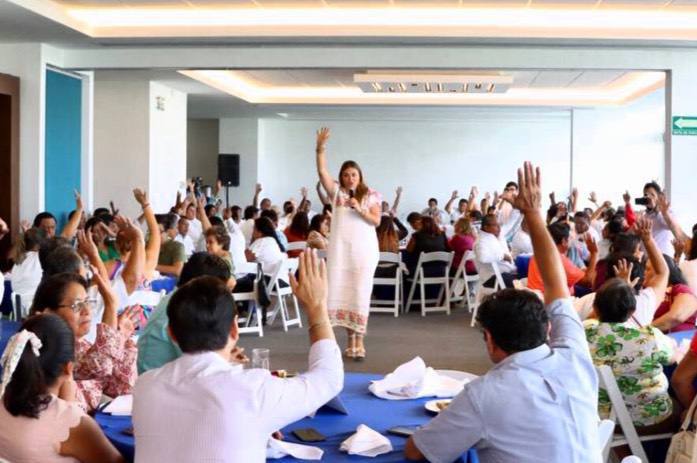 MÉRIDA, YUCATÁN, 07/08/2023. —La diputada federal Cecilia Patrón Laviada reiteró su disposición a respaldar las causas de los trabajadores durante una reunión con unos 200 representantes de 15 sindicatos de la Confederación Revolucionaria de Obreros y Campesinos del Estado de Yucatán (CROC).