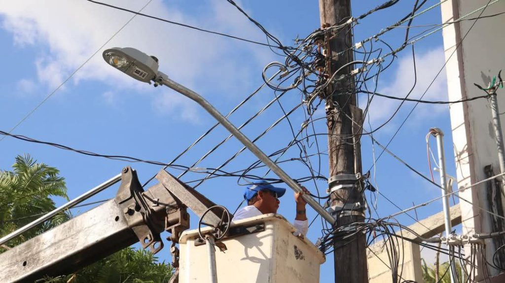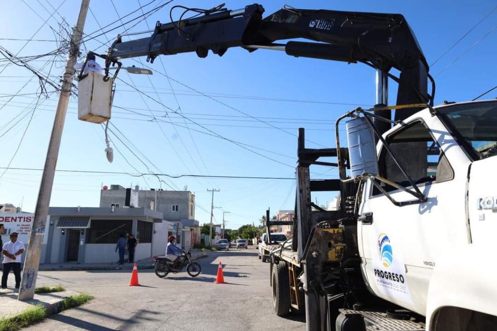 PROGRESO, YUCATÁN, 27/11/2024.-El Ayuntamiento de Progreso, encabezado por el alcalde Erik Rihani González, reafirma su compromiso con la calidad de vida de los habitantes de Chicxulub Puerto debido a que iniciaron labores de mejora en la infraestructura de iluminación, con la renovación y mantenimiento de lámparas LED que beneficiarán a toda la comunidad.