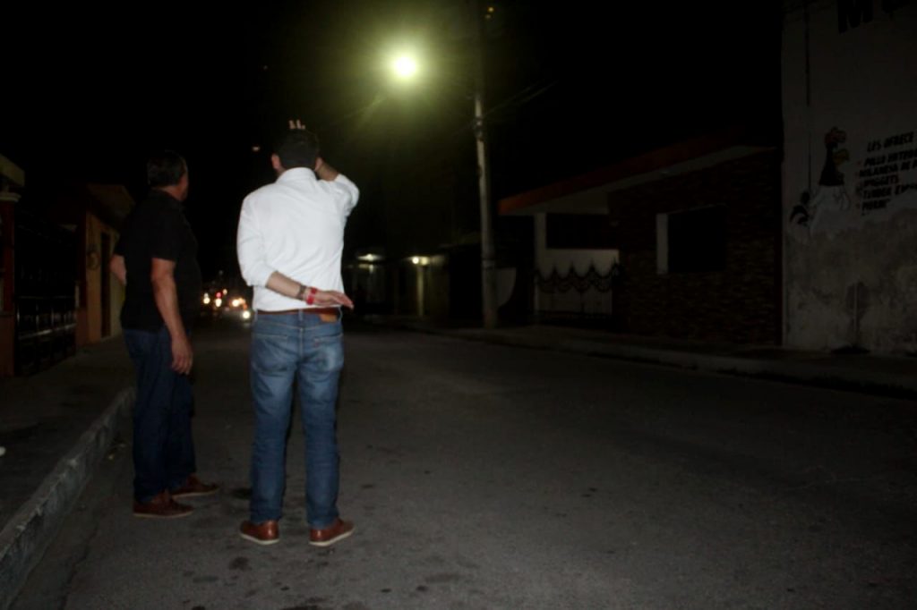 YUCATÁN, 24/03/2023. —Trabajando por un Umán más iluminado, el alcalde Dr. Gaspar Ventura Cisneros Polanco, entregó más de 700 metros lineales de luminarias que consistieron en la instalación de 15 lámparas para la Calle 21 x 24 hasta la calle 20, de la Colonia Centro.