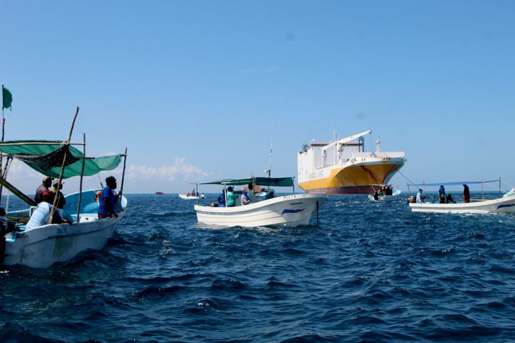 Sin embargo, los pescadores, abordó de unas 20 lanchas, cuando realizaban su manifestación se presentaron elementos de la Secretaría de Marina Armada de México, debido a que, a una corta distancia, se encontraba la patrulla oceánica “Tabasco”.