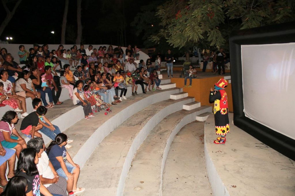 De igual forma, más de un centenar de personas, principalmente mamás acompañadas de sus niños, acudieron a una función de cine al aire libre que se realizó en el parque de la colonia López Mateos, donde luego de disfrutar de un show cómico y ver una película, comieron de un refrigerio, en una noche llena de diversión