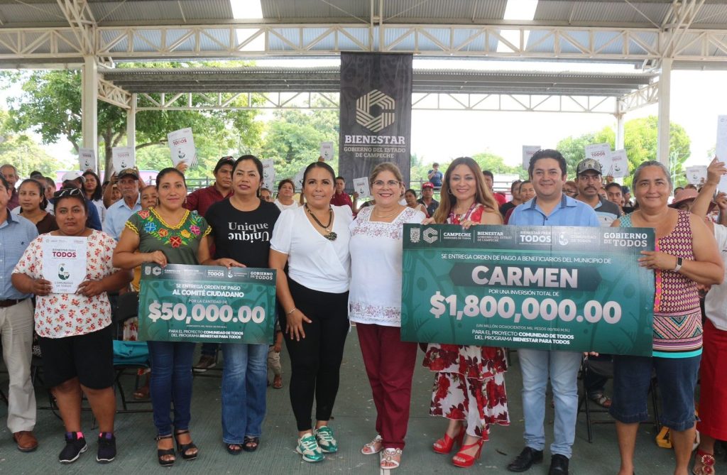 CAMPECHE, 30/08/2023. —Con inversión de 1 millón 800 mil pesos, la Secretaria de Bienestar, Elisa María Hernández Romero, entregó recursos del programa Bienestar para Todos en su proyecto Comunidad de Todos, a 36 Comités Ciudadanos para la recuperación de espacios públicos en localidades del municipio del Carmen.
