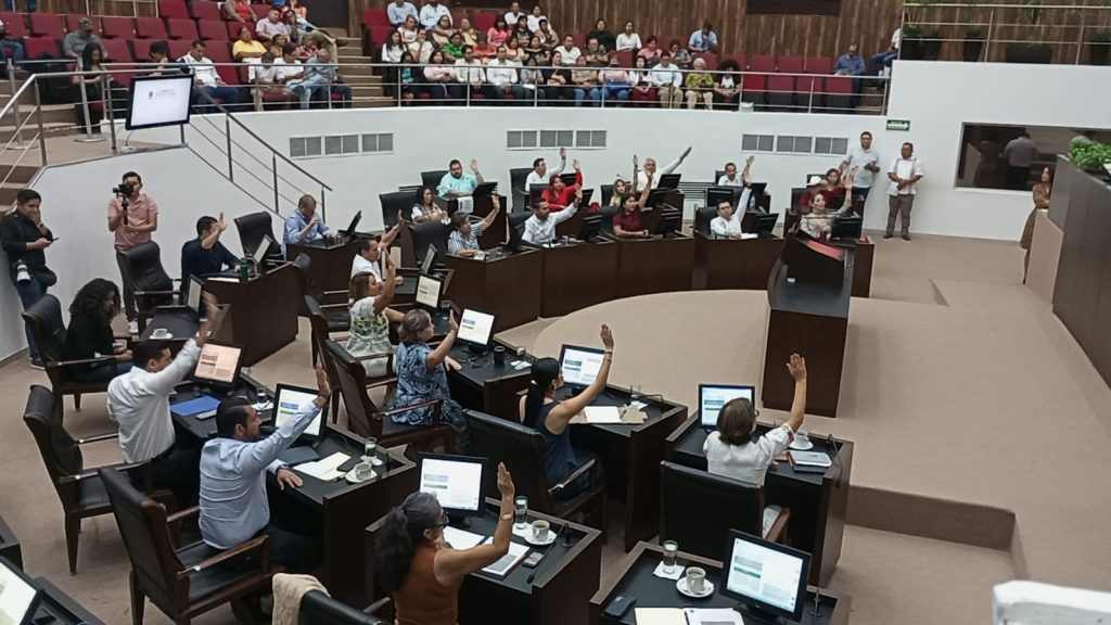 >>>Los 35 diputados del Congreso local, conformados por las bancadas de Morena, PT, PVEM, MC, PRI y PAN, votaron a favor. Realizaron una sesión extraordinaria para aprobar el dictamen.