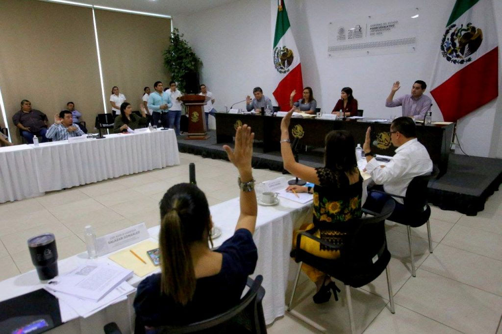 MÉRIDA, YUCATÁN, 28/03/2023. —Esta noche, en el Congreso de Yucatán, los diputados integrantes de la comisión de Puntos Constitucionales y Gobernación aprobaron por mayoría durante la sesión, los proyectos de dictámenes correspondientes a un paquete de iniciativas enviadas por el Gobierno del Estado.