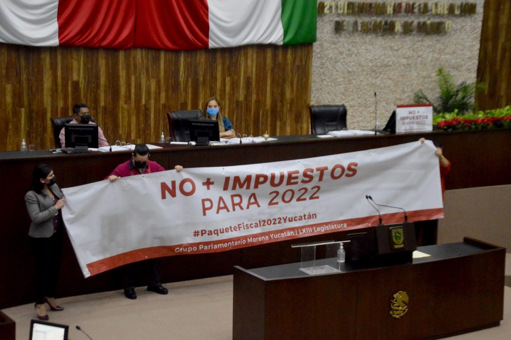 La diputada de Morena, Jazmín Villanueva Moo, enfatizó en que no se puede avalar en su integridad un paquete fiscal estatal que solo destina mayores recursos a su aparato burocrático y a su imagen institucional, que presenta iniciativas aún y cuando estas puedan estar al margen de la ley; que su contenido se aleja mucho de las verdaderas necesidades del pueblo yucateco.