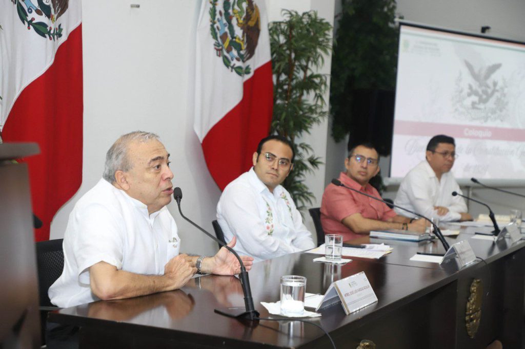 Seguidamente, Mario Aguilar Poot, luego de aportar datos precisos respecto a la historia de la Constitución, hizo énfasis en la importancia de reivindicar el constitucionalismo local, lo cual se logrará efectuando eventos como el coloquio a las futuras generaciones, retomando los nombres de los yucatecos insignes que colaboraron en este suceso.
