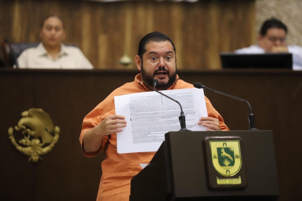MÉRIDA, YUCATÁN, 08/05/2025. —El diputado Bayardo Ojeda, en el Congreso de Yucatán, denunció una red de agiotista y fraudes ocurridos en Ciudad Caucel y Tixcacal, en complicidad con una Notaría Pública.