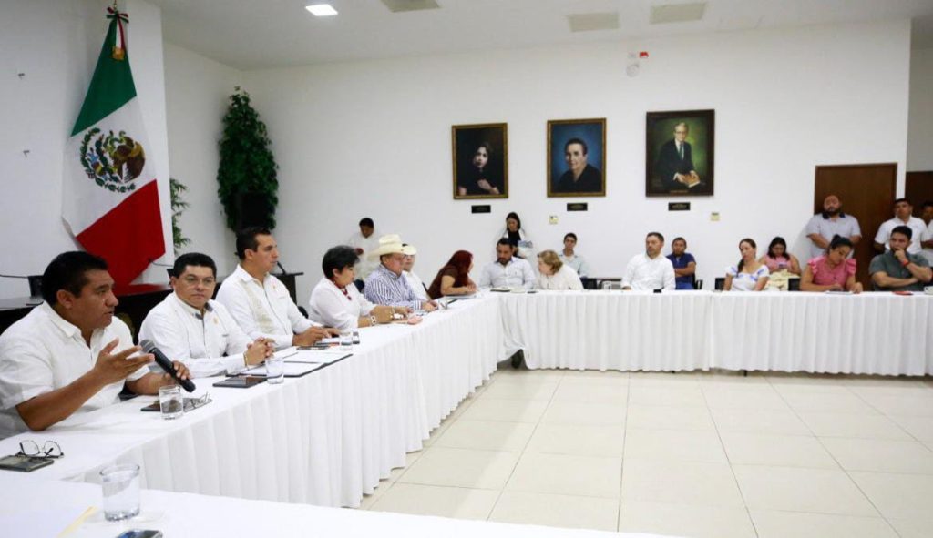 MÉRIDA, YUCATÁN, 24/10/2024. —Diputados de la Comisión de Educación, Ciencia y Tecnología, en el Congreso de Yucatán, se reunieron con los Secretarios Generales de las Secciones 33 y 57 del Sindicato Nacional de los Trabajadores de la Educación (SNTE), para escuchar y recabar la información correspondiente y trabajar en la legislación de iniciativas o reformas que contribuyan al mejoramiento de las condiciones laborales del personal educativo.