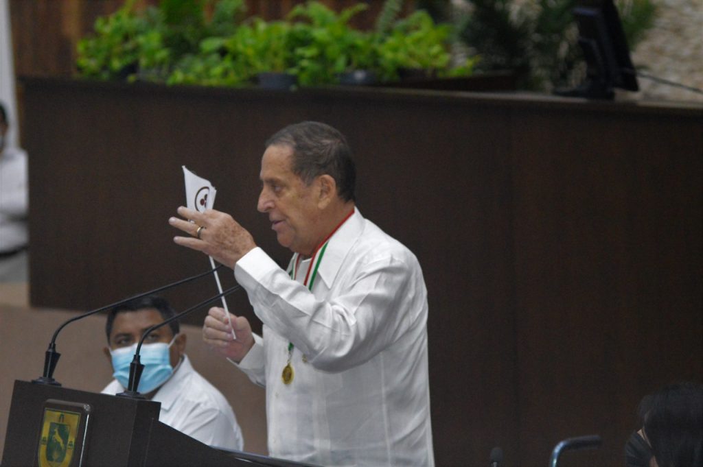 En su mensaje, el recipiendario hizo un llamado ante la máxima tribuna para que todas y todos los yucatecos se arropen en la bandera de la paz, la cual es un símbolo de unidad en la diversidad y de respeto a todas las creencias.