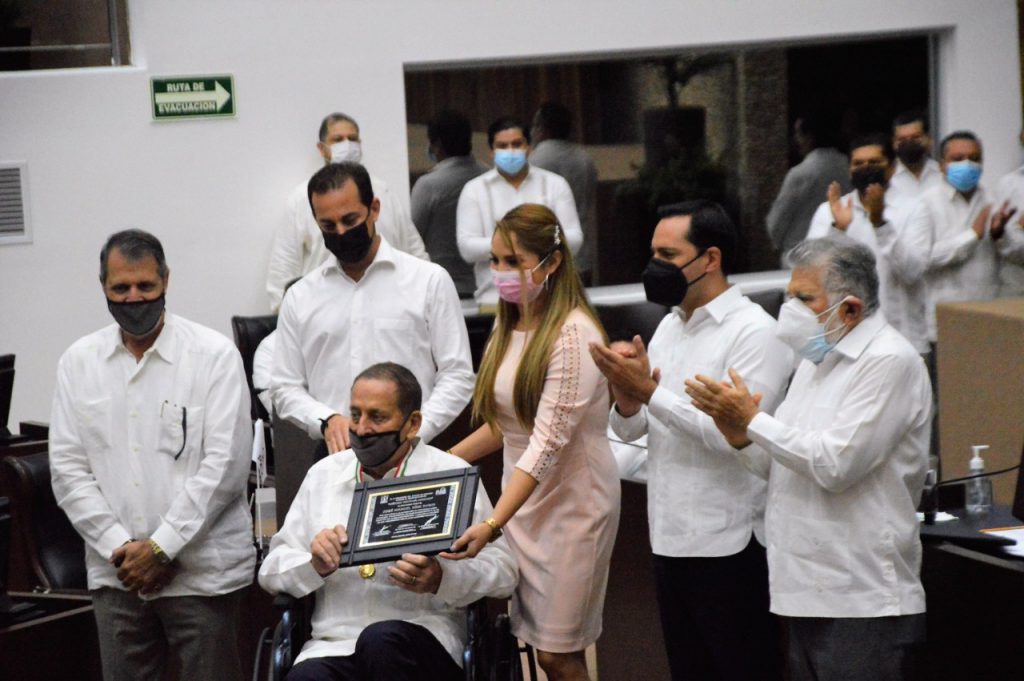 MÉRIDA, 12/01/2022. –En reconocimiento a su trayectoria en labores humanistas y filantrópicas, su alma colectiva, llevando siempre un mensaje de paz y caridad que va más allá de todo, el Congreso del Estado entregó en Sesión Solemne, la Medalla de Honor “Héctor Victoria Aguilar” al José Manuel Díaz Rubio.
