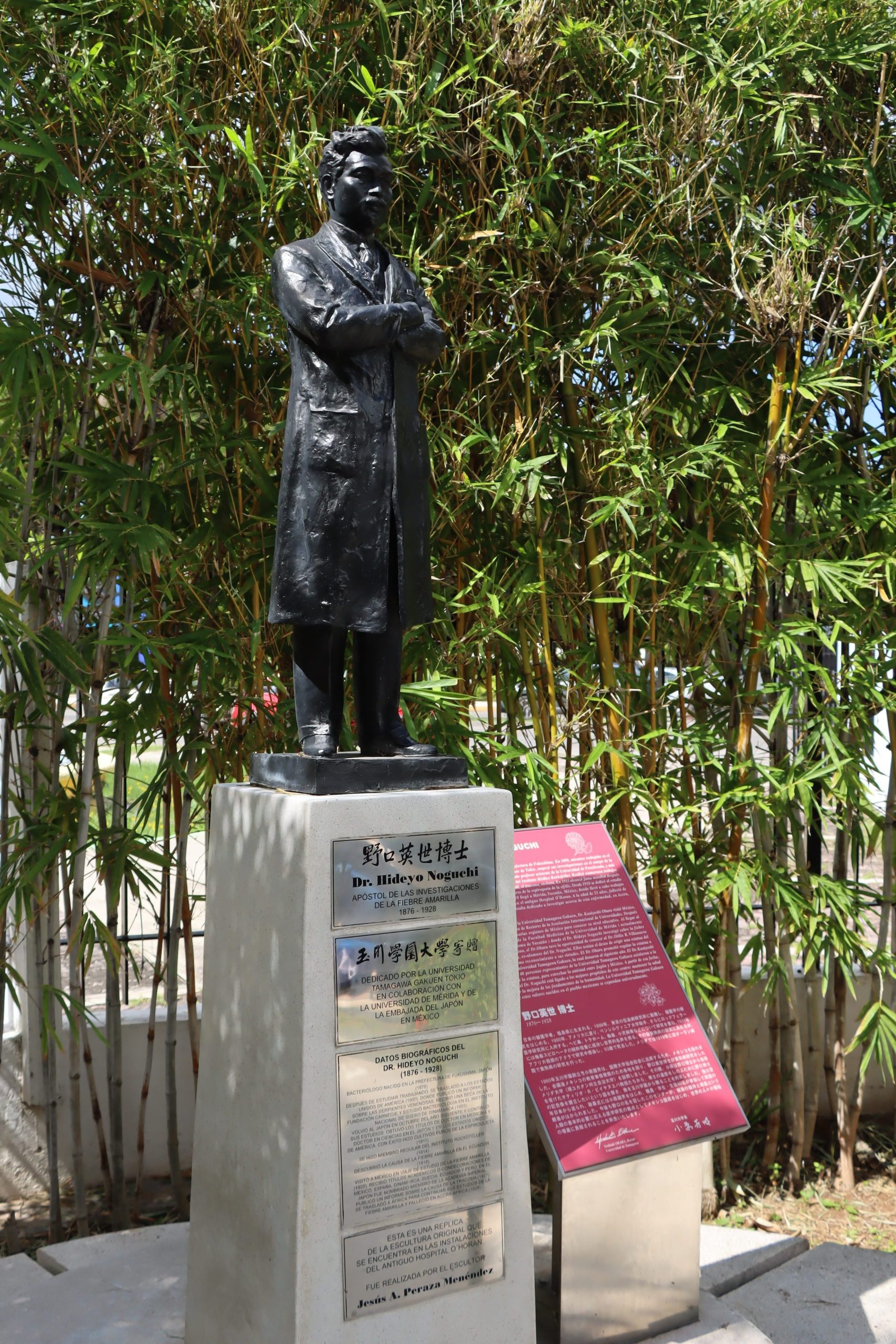 Antes de finalizar la ceremonia se colocó una ofrenda floral ante la efigie del ilustre científico japonés que da nombre al CIR-UADY, quien fue médico, bacteriólogo e investigador que trabajó en Yucatán a principios del siglo XX en las instalaciones del Hospital Agustín O’Horán.