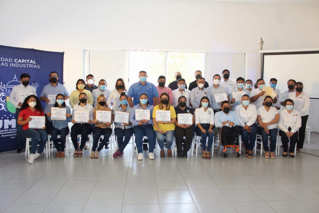 En su intervención el alcalde de Umán, Dr. Gaspar Ventura Cisneros Polanco, señaló que estas acciones son con el objetivo de brindar capacitaciones a las empresas del corredor industrial, para que sus propios empleados adquieran herramientas que les permitan mejorar su desempeño laboral, y que al final, servirán para su propia mejora como individuos.