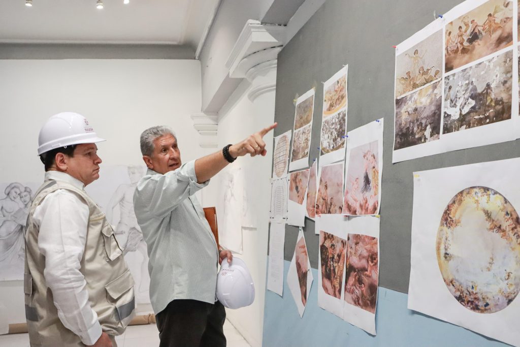 Por su parte, el arquitecto restaurador autorizado y exdirector del INAH, Luciano Cedillo Álvarez, expuso al Gobernador el estado de los daños estructurales y arquitectónicos del recinto cultural debido a la contingencia ocurrida, e indicó que en este momento su equipo se encuentra trabajando en diferentes áreas del teatro que fueron dañadas, entre las que se incluyen el vestíbulo o foyer, la boca de escenario y, próximamente, comenzarán las labores de restauración en la cúpula.