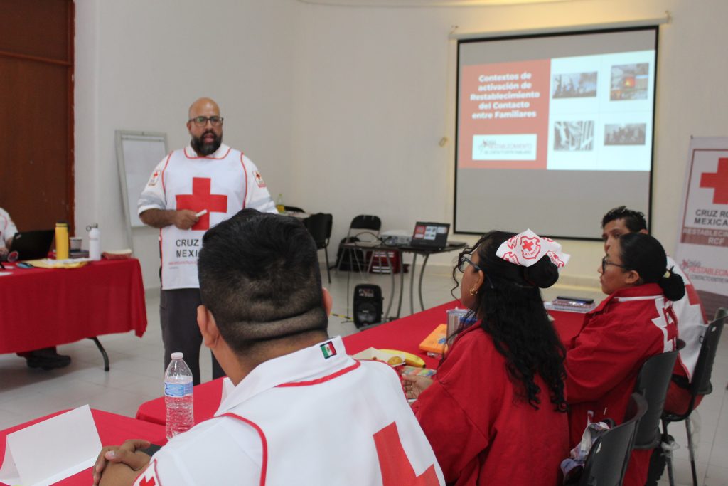 Ante los voluntarios, el Coordinador Nacional de Migración y Restablecimiento de Contacto entre Familiares (RCF) de la institución, José Luis Camacho Toledo, explicó que hay una gama de herramientas y servicios que se pueden ofrecer a las personas en tránsito para proteger su vida y mitigar su sufrimiento.