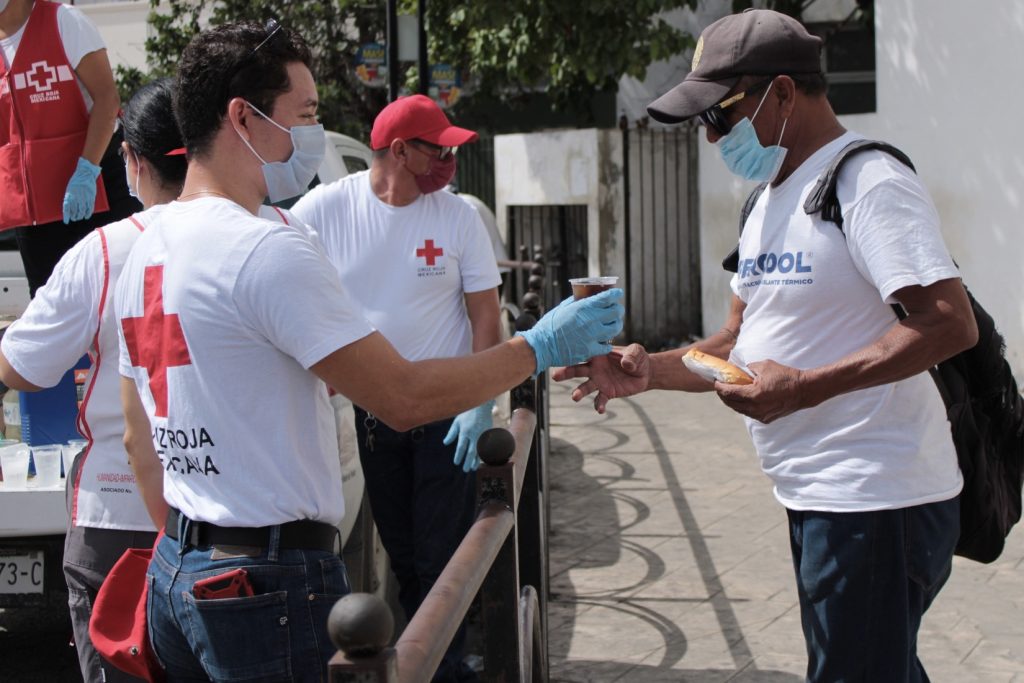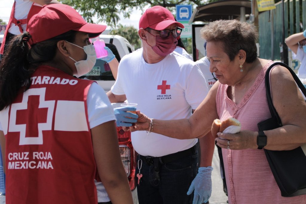 MÉRIDA, YUCATÁN, 23/07/2023. —Los voluntarios sociales de Cruz Roja Mexicana Delegación Yucatán, como parte de las actividades de resiliencia, distribuyeron a las puertas de los Hospitales Agustín O´Horán y Benito Juárez, alimentos a los familiares de personas que se encuentran ingresadas.