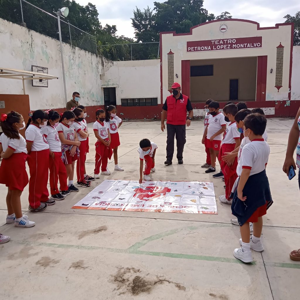 MÉRIDA, 12/10/2022.- La Cruz Roja Mexicana Delegación Yucatán, aplica el proyecto Centros Educativos Seguros, como parte de la resiliencia comunitaria para fortalecer la conciencia, el conocimiento sobre el riesgo, y la importancia de la preparación ante emergencias, y desastres.