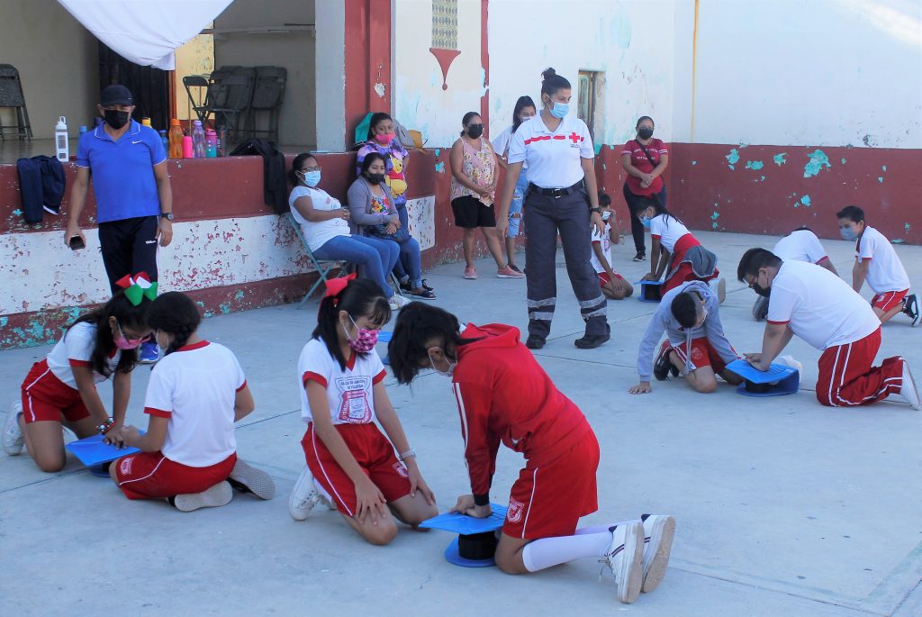 MÉRIDA, 12/10/2022.- La Cruz Roja Mexicana Delegación Yucatán, aplica el proyecto Centros Educativos Seguros, como parte de la resiliencia comunitaria para fortalecer la conciencia, el conocimiento sobre el riesgo, y la importancia de la preparación ante emergencias, y desastres.