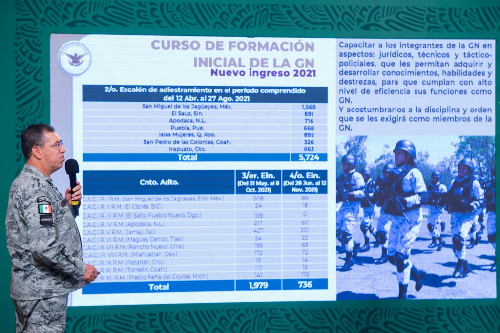 El comandante de la Guardia Nacional, Luis Rodríguez Bucio, explicó que la corporación a su cargo tiene 99 mil 946 elementos que constituyen la fuerza operativa, de los cuales 84 mil 954 están desplegados y 14 mil 992 en actividades de apoyo a las operaciones; 2 mil 998 están en diversas situaciones administrativas.