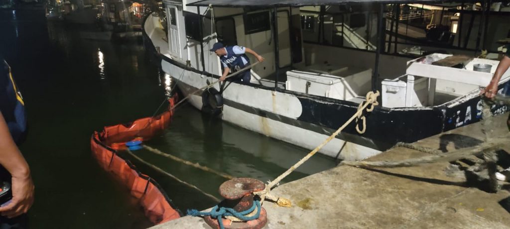 Para esto, los marinos especialistas en temas medioambientales colocaron una barrera para controlar las aguas de sentinas y combustible con el fin que se extendiera y causará más daños ambientales.