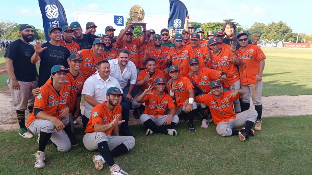 YUCATÁN, 02/12/2022. —Los Leones de Yucatán se coronan como los campeones de la Liga Invernal Mexicana de Béisbol de la Zona Sur al vencer 7-6 a Combinados de Toros de Tijuana y Rieleros de Aguascalientes teniendo como sede el municipio de Umán.