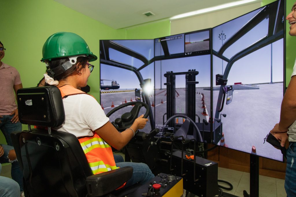 Una de las principales fortalezas del laboratorio es el Simulador de Montacargas que permite replicar la operación de este aparato con escenarios de capacitación para fomentar prácticas de manejo de este tipo de maquinaria más seguras y maximizar la productividad.