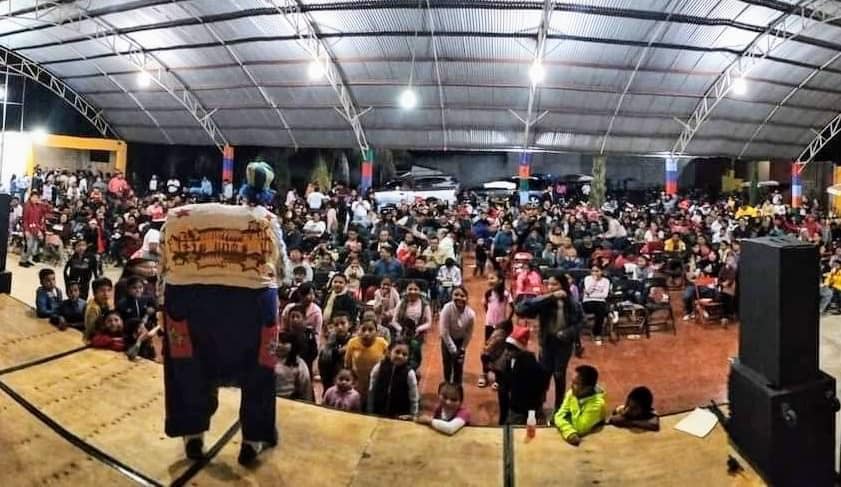 TICUL, YUCATÁN, 19/12/2023. —La diputada Rubí Argelia Be Chan (Morena), con el fin de brindar un grato momento a niños en el municipio de Ticul, realizó una posada, con un espectáculo de un payaso.