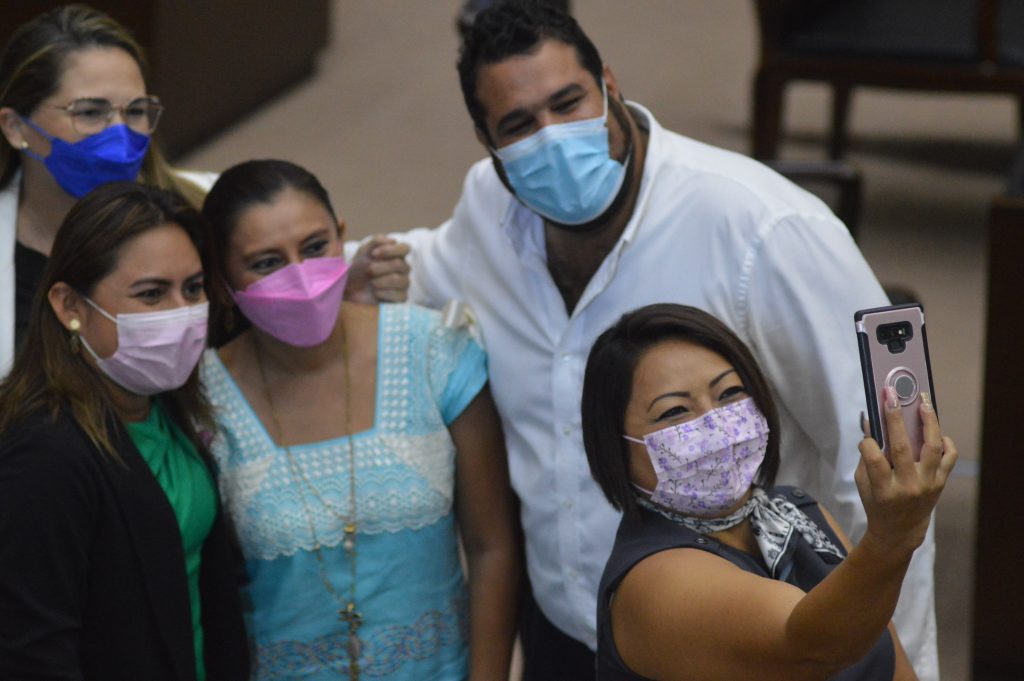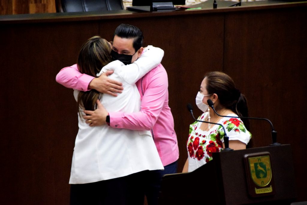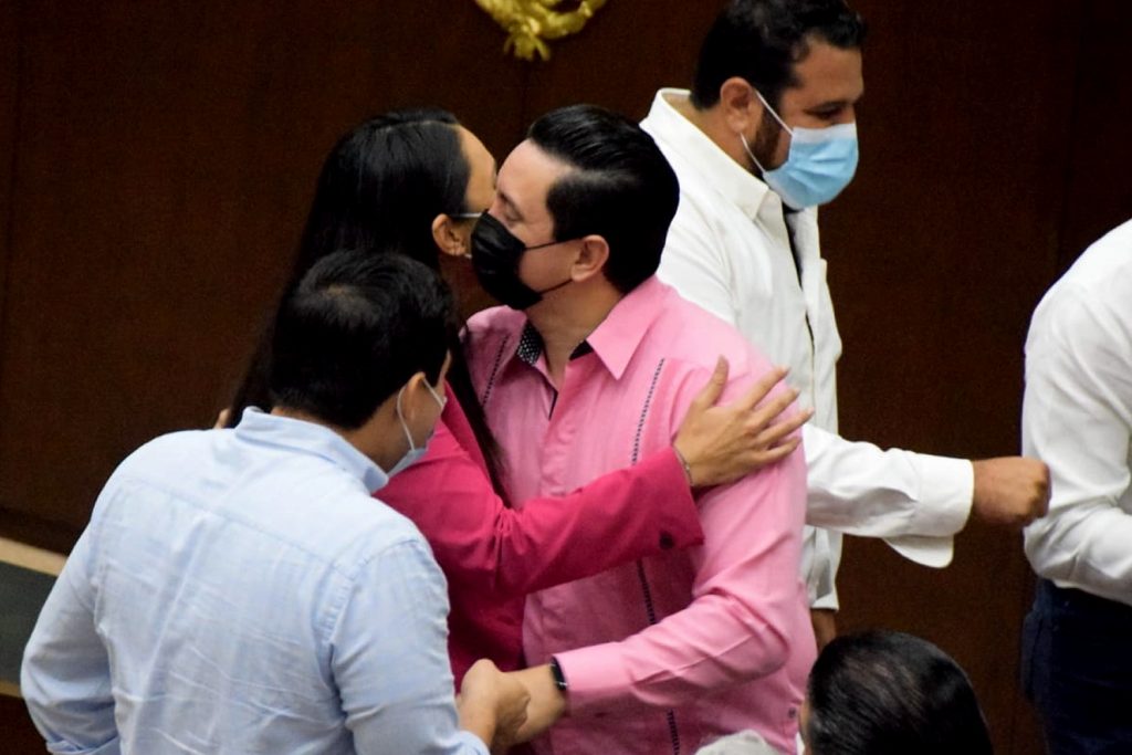 06/10/2021, MÉRIDA. –Parece que los diputados de Yucatán están “blindados” para no contagiarse de coronavirus, pues se abrazaron y hasta besos hubo antes del inicio de la sesión del pleno.