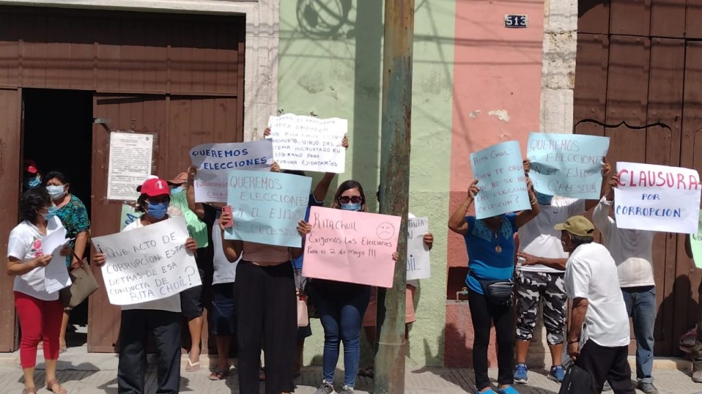 “Argumentando que la pandemia está descontrolada en Celestún, esa señora ha cancelado en cuatro ocasiones las asambleas. La última fue la del 22 de abril, que se convocó para las 11 de la noche (…) queremos elecciones para tener un comisario ejidal que cuide los intereses de los celestunenses. No importa si es el opositor o yo”, señaló Manuel Jesús Mijangos Díaz, candidato de la planilla verde.