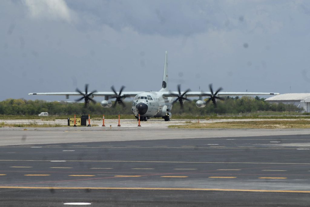 El avión llegó con 23 elementos, miembros de un escuadro especializado en el estudio y análisis de tormentas tropicales; además de personal del Centro de Huracanes de Miami.