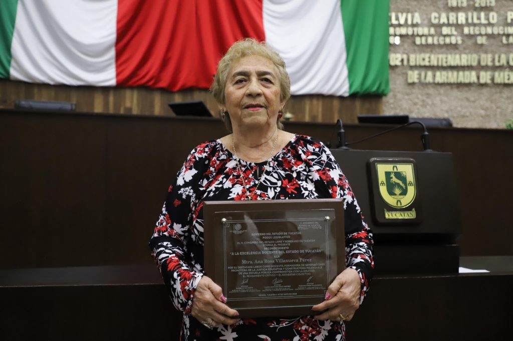MÉRIDA, YUCATÁN, 20/05/2025. — La maestra Ana Rosa Villanueva Pérez, recibió el reconocimiento “Excelencia Docente del Estado de Yucatán 2025”, que otorga el Congreso de Yucatán, pero, los diputados se llevaron “la regañada de su vida” al exhortarlos que no olviden la educación básica debido a que son los cimientos de la vida.