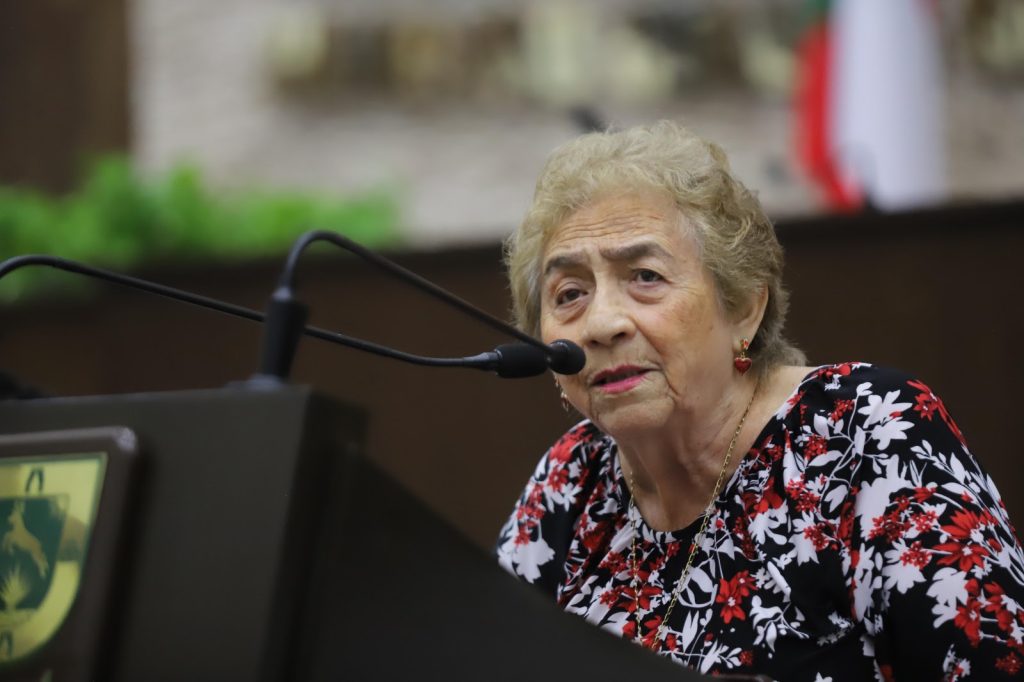 Ella recibió de las manos de la presidenta de la Mesa Directiva, Estefanía Baeza, su reconocimiento, que fue aplaudido por los diputados, militares, políticos, funcionarios y familiares de la maestra.